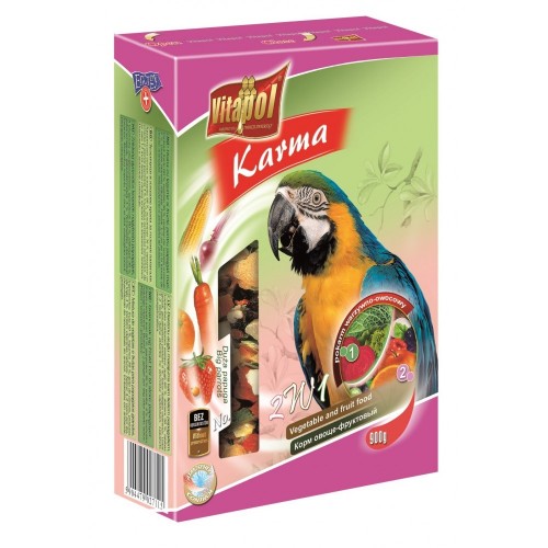 * uzupełniająca karma pełna owoców i warzyw dla dużych papug