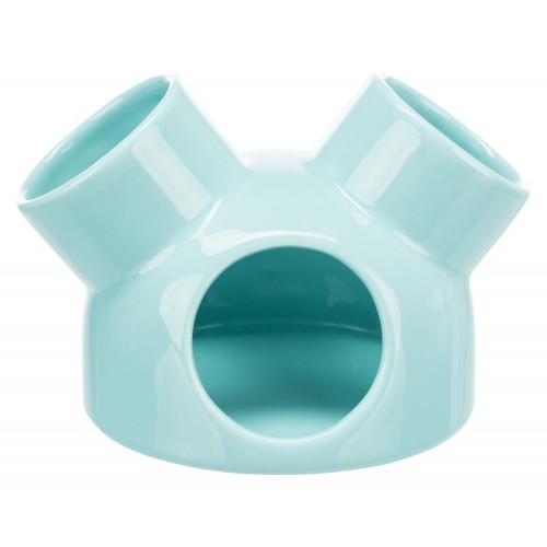 Domek dla myszy, turkus, ceramiczny, o 12 × 10 cm, z 3 wejściami