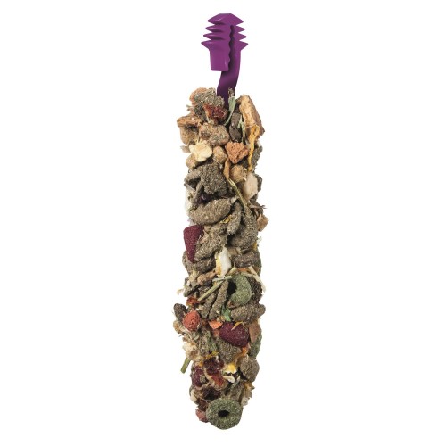 Skład: tymotka, lucerna, łuski owsiane, soja, makuch z nasion słonecznika, jęczmień, kukurydza, mąka z ziarna kukurydzy, skrobia kukurydziana, pszenica, otręby pszenne, płatki grochowe, płatki kukurydzy, korzeń cykorii suszony, burak suszony (1%), marchew suszona (1%), pasternak suszony, jabłko suszone (1%), banan suszony, pomidor suszony (0,5%), por suszony, kwiat nagietka suszony, pulpa buraczana, pulpa jabłkowa, zioła (bazylia, rozmaryn, mięta pieprzowa, tymianek), fosforan dwuwapniowy, chlorek sodu, węglan wapnia, juka.