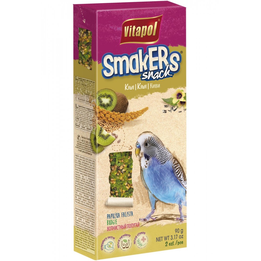 Smakers, który obok wyselekcjonowanych nasion zawiera również owoc kiwi dostarcza papużkom wielu naturalnych witamin, w tym głównie witaminę C oraz witaminy z grupy B. Owoc posiada właściwości nadające odporność i działające przeciwnowotworowo.