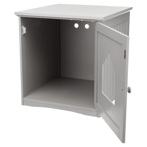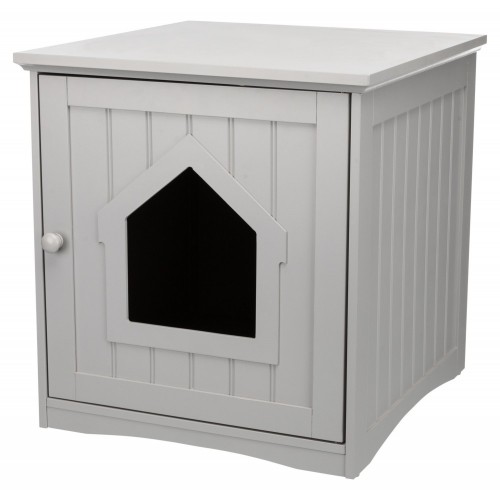 MDF, lakierowany do ukrycia kuwety dla kota równiez jako miejsce do spania Zapobiega rozsypywaniu sie zawartosci kuwety otwory wentylacyjne w tylnym panelu drzwi z zamkiem magnetycznym Wymiary odpowiednie do artykul nr 4030