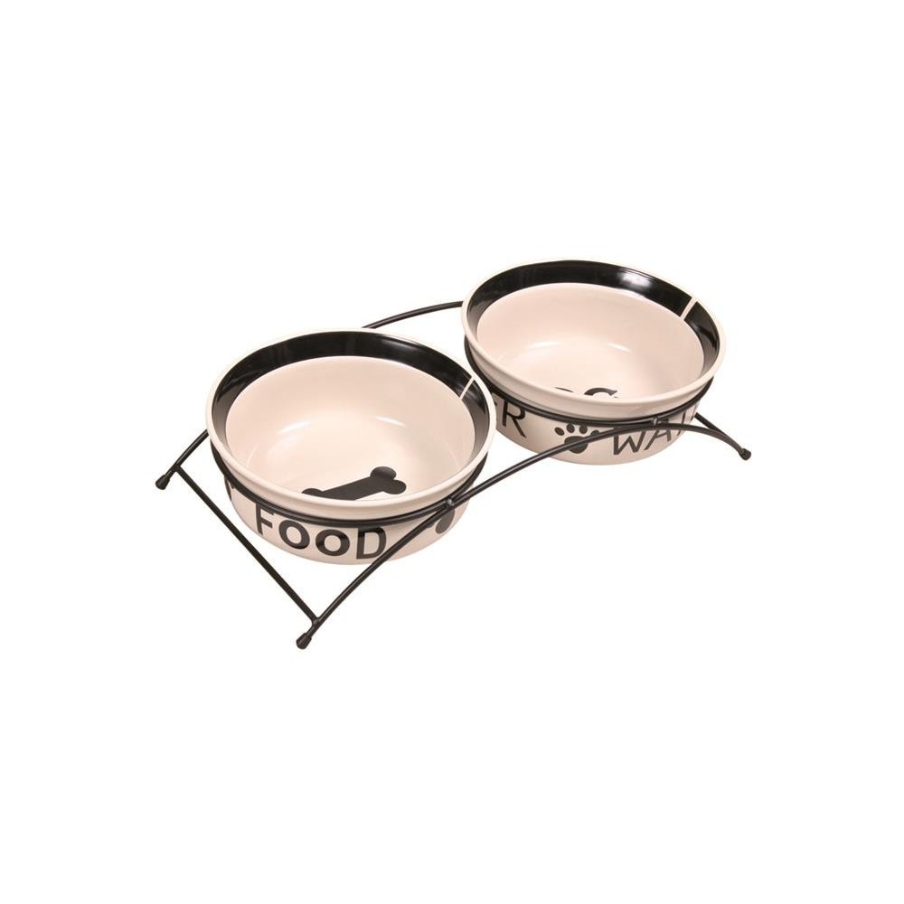 Zestaw misek ceramicznych na stojaku Eat on Feet 1.6 l/o 20 cm biało czarne