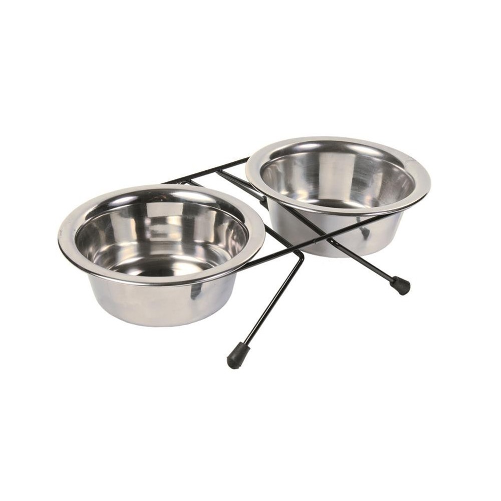 Nierdzewna 2 miski ze stali nierdzewnej na stojaku Metal malowany proszkowo, czarny Antyposlizgowe gumowe nózki Miski wymienne: artykuly 24840–24844