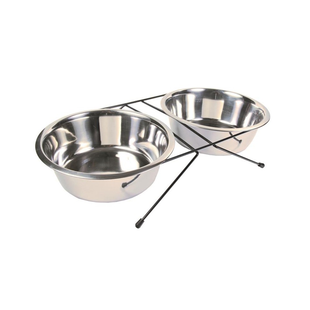 Nierdzewna 2 miski ze stali nierdzewnej na stojaku Metal malowany proszkowo, czarny Antyposlizgowe gumowe nózki Miski wymienne: artykuly 24840–24844