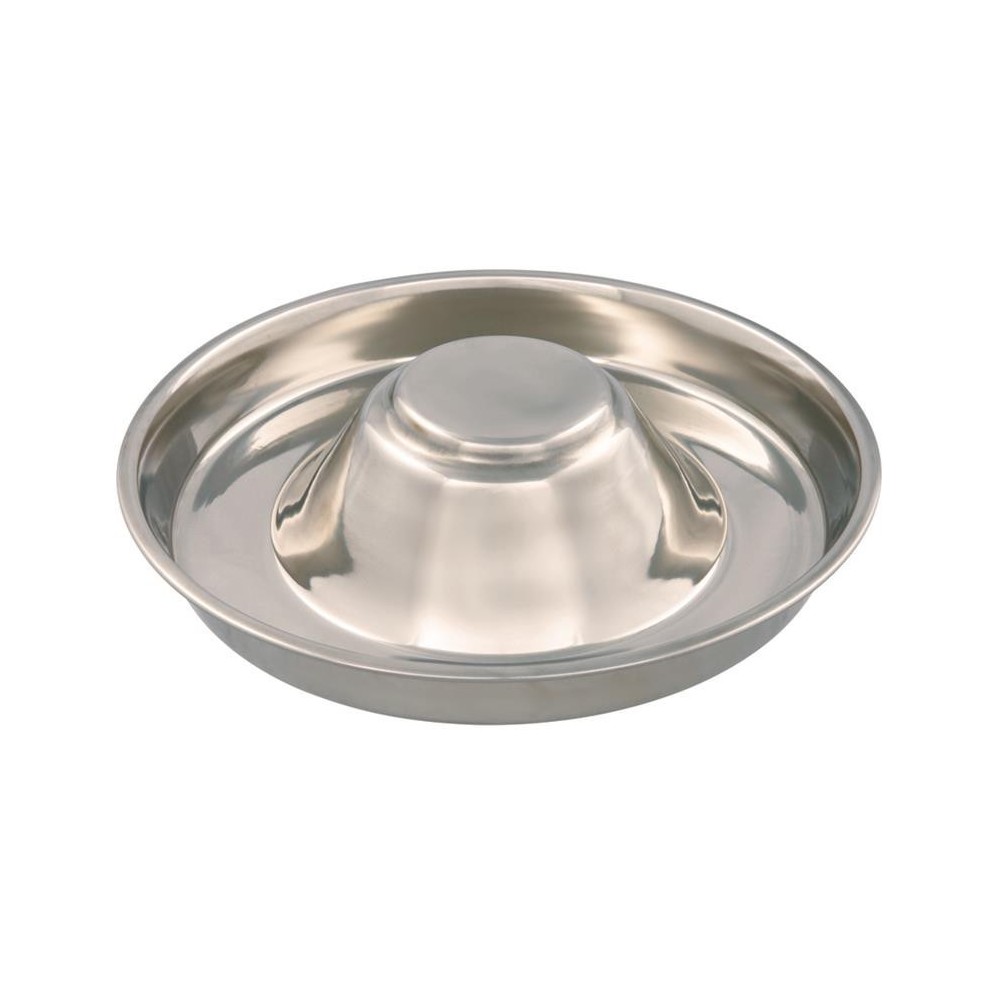 Ze stali nierdzewnej Uwypuklenie zapobiega siadaniu lub przebieganiu szczeniat przez miske Duza srednica zapewnia wystarczajaca ilosc miejsca dla kilku szczeniat Niskie obrzeze pozwala na spokojne jedzenie nadaje sie do zmywarki