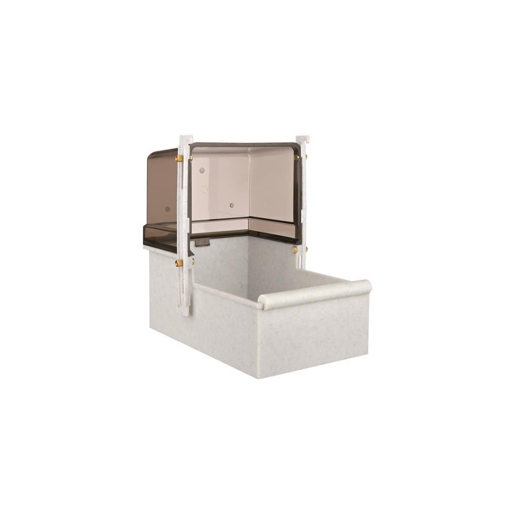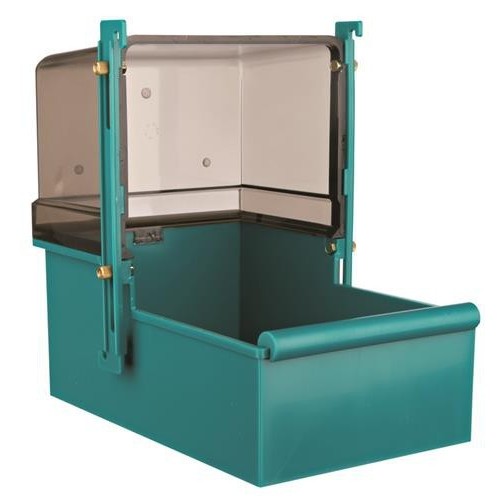 Do zawieszania przy drzwiczkach wejsciowych optymalne otwarcie drzwiczek: 15 x 21 cm Z regulowanym uchwytem Góra: przyciemniana Pojemnik: różne kolory Z plastiku
