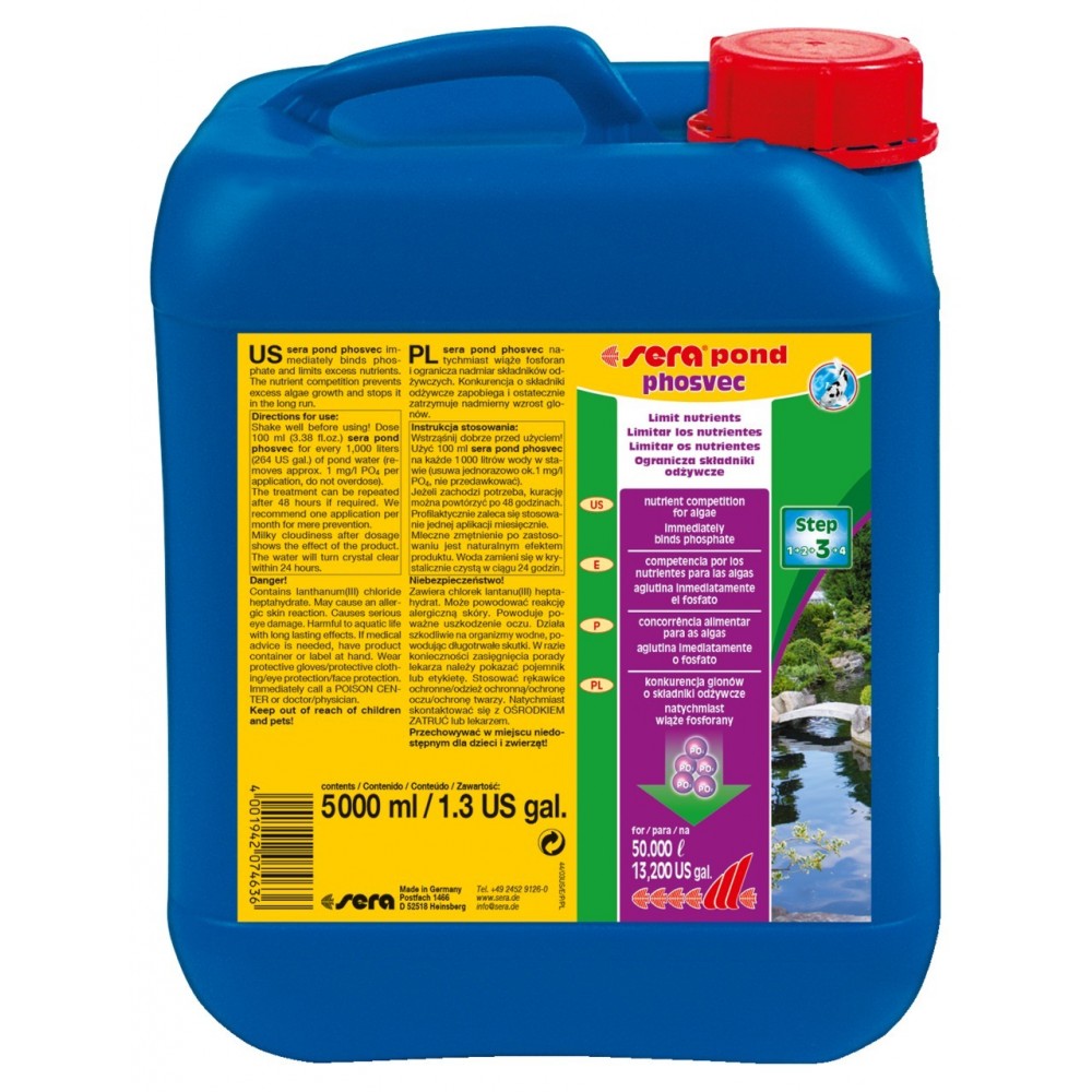 pond phosvec szybko, łagodnie i trwale wiąże fosforan. Niekontrolowane rozprzestrzenianie się uciążliwych glonów jest trwale powstrzymywane za pomocą tego skutecznego i zrównoważonego środka zapobiegawczego polegającego na ograniczaniu ilości składnika odżywczego.