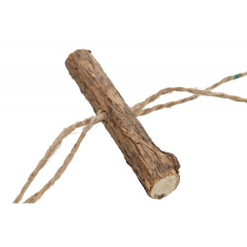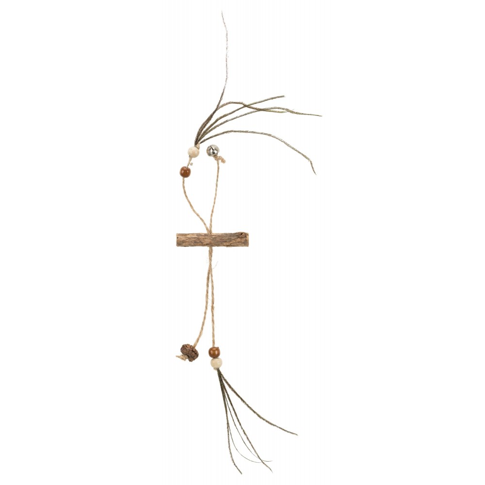 Z owocami matatabi, piórkiem, drewnianymi koralikami i dzwonkiem/z juty