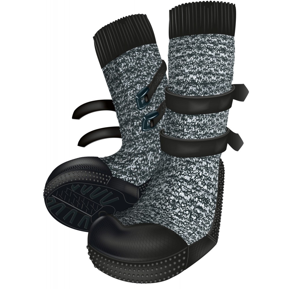 Bardzo wygodne dzieki elastycznym materialom Antyposlizgowa podeszwa z podnoskiem Dodatkowa przyczepnosc np. dla starszych psów Ochrona wrazliwych lap i drobnych urazów Z praktycznym paskiem na rzep, z dwoma paskami na rzep w rozmiarach XS–S Bawelna i nylon/poliester/elastan kolor: cetkowany czarny / czarny