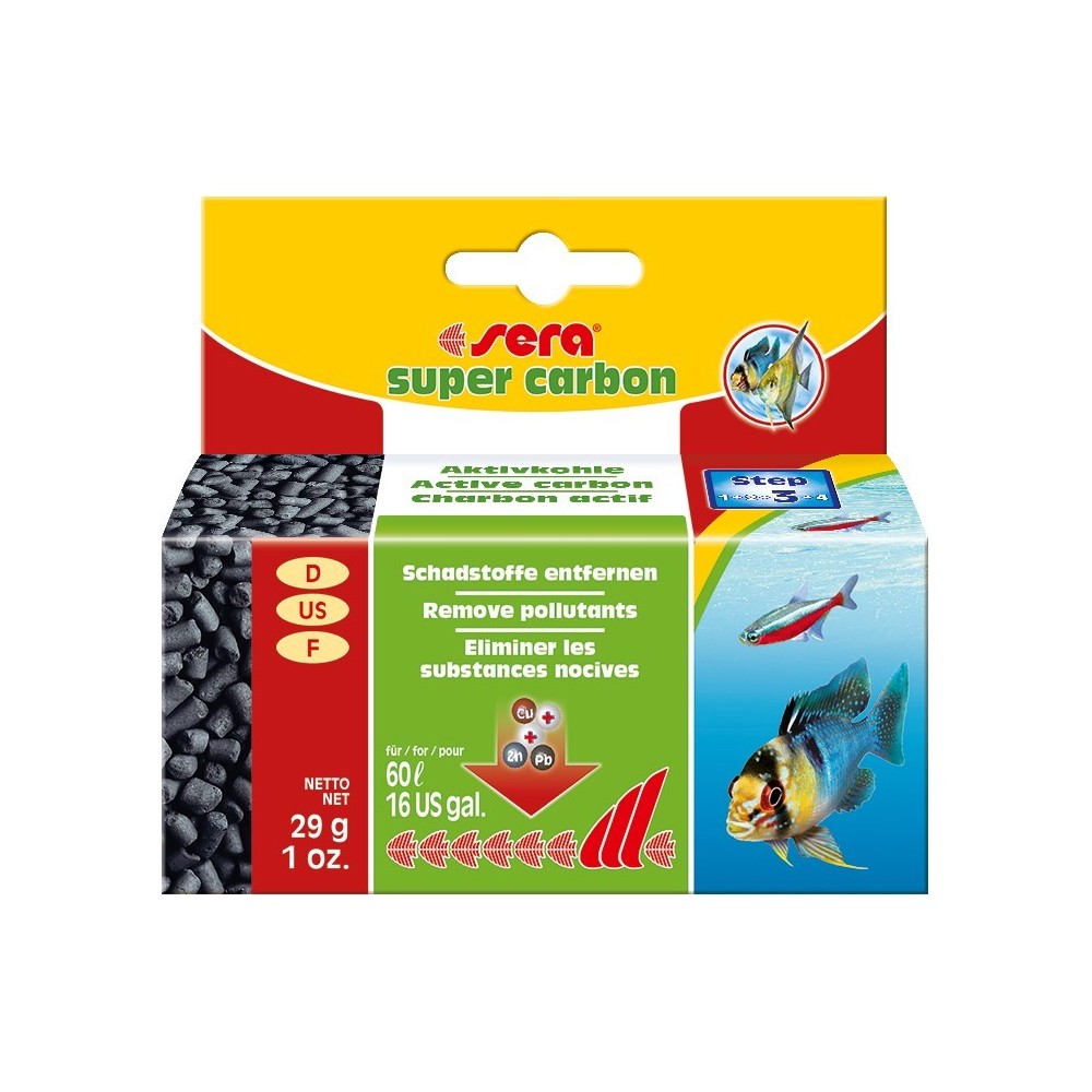 Czysta woda dla zdrowia Pochłania pozostałości po leczeniu Usuwa zanieczyszczenia i przebarwienia Bez fosforanów Skuteczny przez długi czas Natychmiastowa pomoc w ciężkich zatruciach Dla czystej i bezpiecznej wody Pozostałości po zakończonym leczeniu nie są już potrzebne i powinny zostać całkowicie usunięte tak szybko jak to tylko jest możliwe. Zapobiega to dodatkowym podmianom wody, co mogłoby wywołać dodatkowy szok u ryb. Specjalny węgiel aktywny – super carbon – szybko i skutecznie usuwa te pozostałości bez efektów ubocznych, nie wpływa na wartość pH w wodzie. Używając peletu węglowego, niebezpieczne dla środowiska substancje mogą być całkowicie usuwane wraz z odpadami komunalnymi, pozostając bezpiecznymi dla środowiska. super carbon można również użyć w przypadku niebezpiecznych zatruć (np. gdy podejrzane zanieczyszczenia dostały się do wody w czasie naprawy akwarium, z nieodpowiednich dekoracji, przedawkowania preparatów, itp.) jak również przy usuwaniu uciążliwych przebarwień wody.