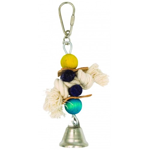 Panama Pet wisząca zabawka z drewna, skóry i sznurka, z dzwonkiem 17 cm